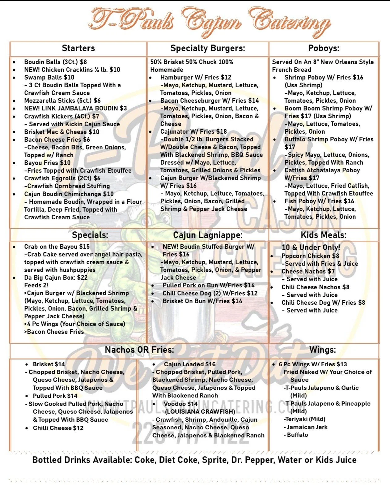 At T-Paul’s Cajun Catering, our plate lunches are made the same way we cook for our own family — from scratch, full of flavor, and cooked with love.